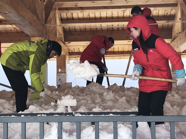 2017年3月5日,40余名志愿者在北景區(qū)老山門候車亭前集合,前往瀑布回廊清雪。長白山由于特殊的地理位置和氣候,冬季雪期長、雪量大,經(jīng)過一年積淀,回廊內(nèi)積雪平均厚度已達(dá)1.5米,面對艱巨的任務(wù),志愿者們用高漲的熱情對抗天寒地凍,經(jīng)過個(gè)6小時(shí)的奮戰(zhàn),下午三點(diǎn)回廊積雪被清掃一空,為迎接游人的到來做好了準(zhǔn)備。