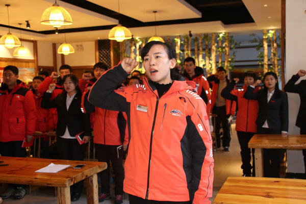 在長白山北景區(qū)黨支部積極分子都慶的帶領(lǐng)下,進(jìn)行了“我是積極分子,我?guī)ь^”宣誓活動(dòng)。