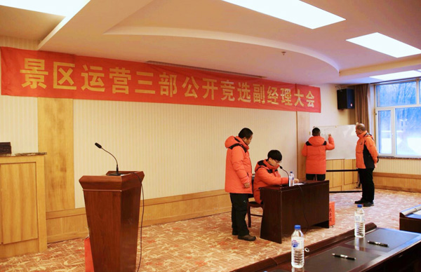 為了充分挖掘公司內(nèi)部員工潛力,搭建員工晉升的平臺,做到“人盡其才,才盡其用”,激勵更多員工主動創(chuàng)新工作,實現(xiàn)優(yōu)化人員配置目的。12月21日,公司運營三部召開競聘部門副經(jīng)理大會,競選范圍是部門全體駕駛員。公司副總經(jīng)理孫青春、西南景區(qū)黨支部書記孫集忠、景區(qū)運營部副總經(jīng)理趙繼剛出席會議,公司黨群部部長張光輝、人力資源部部長安京受邀參加會議。